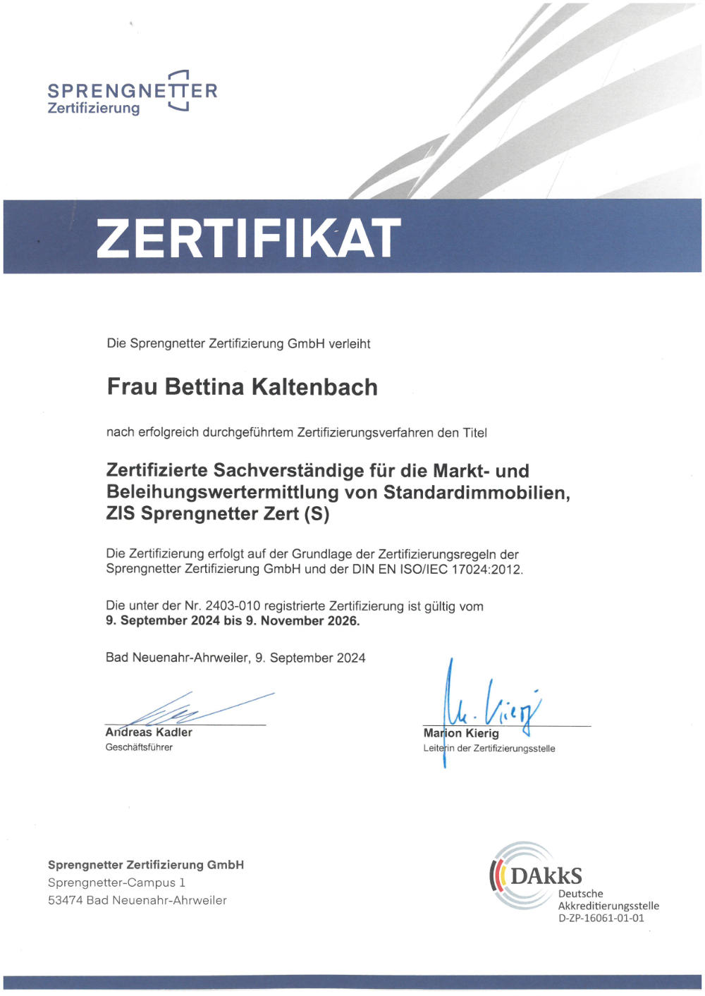 Das unten dargestellte Logo garantiert Ihnen demzufolge eine gesicherte Gutachtenqualität. Der hohe Standard der Qualitätssicherung und des Images der Sprengnetter Immobilienbewertung ist auch daran abzulesen, dass dieses auch Inhaber einer der beiden in Deutschland von der Trägergemeinschaft für Akkreditierung GmbH (dessen Träger der Bund, die Bundesländer und die deutsche Wirtschaft sind) akkreditierten Zertifizierungsstellen für Personalzertifizierung von Bewertungssachverständigen nach der DIN EN ISO/IEC 17024 ist.